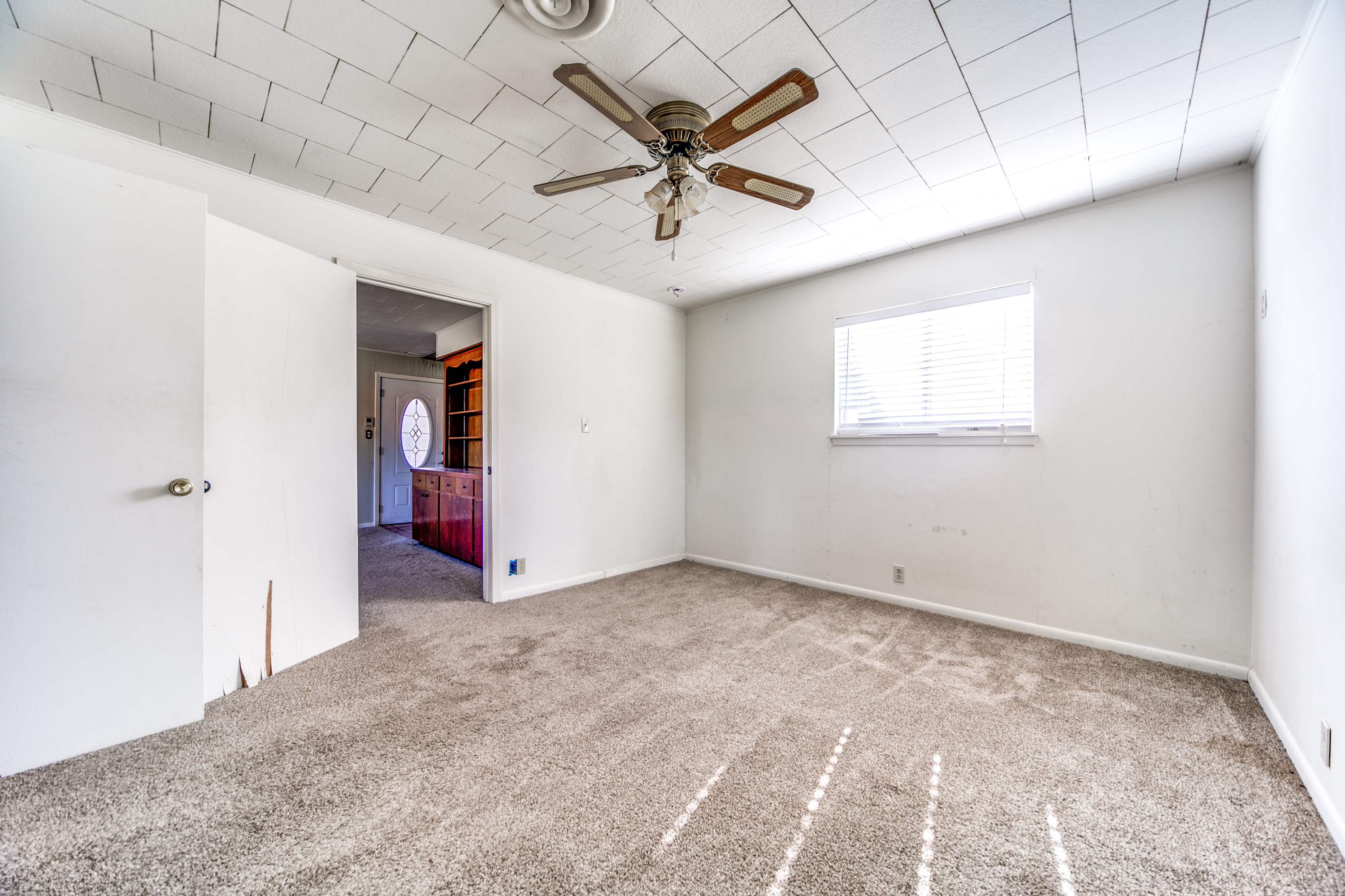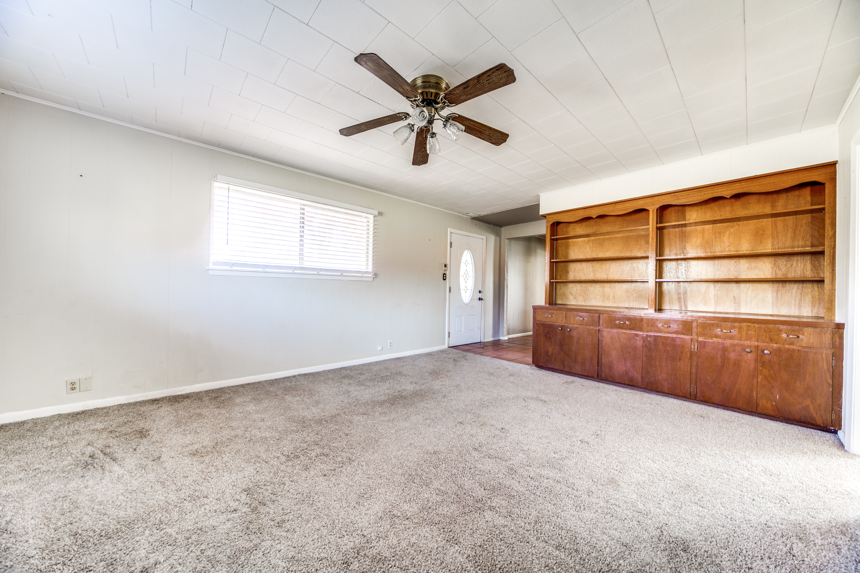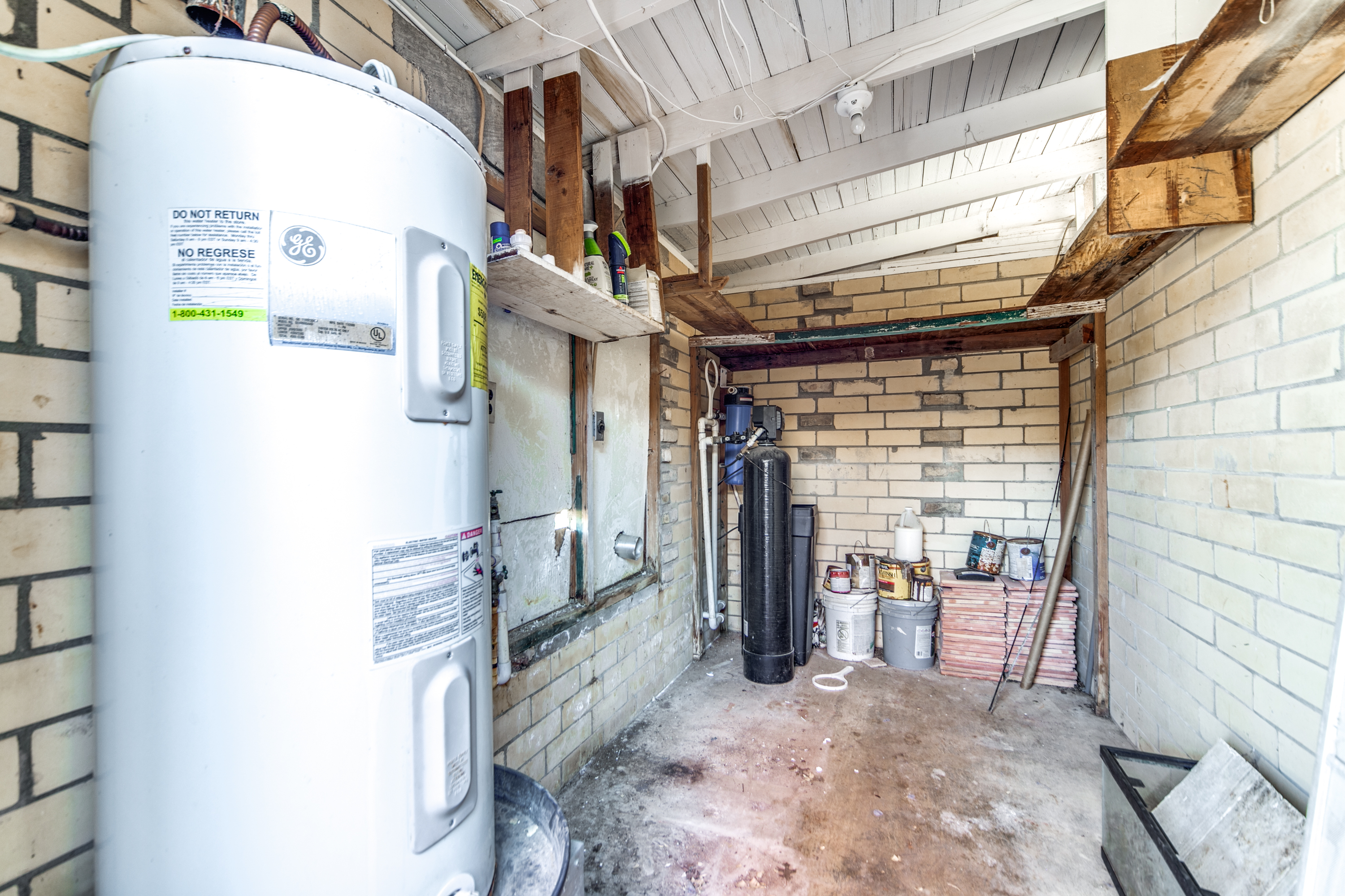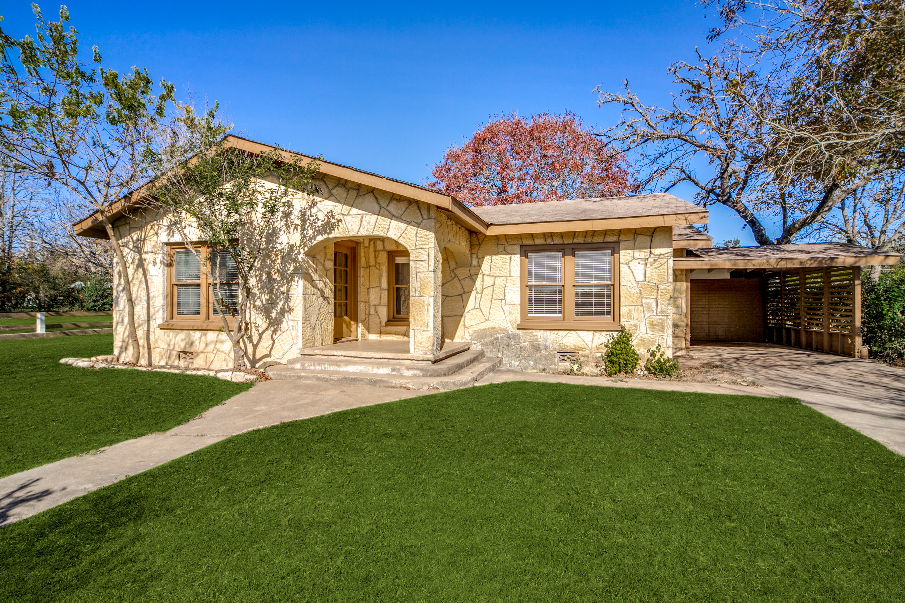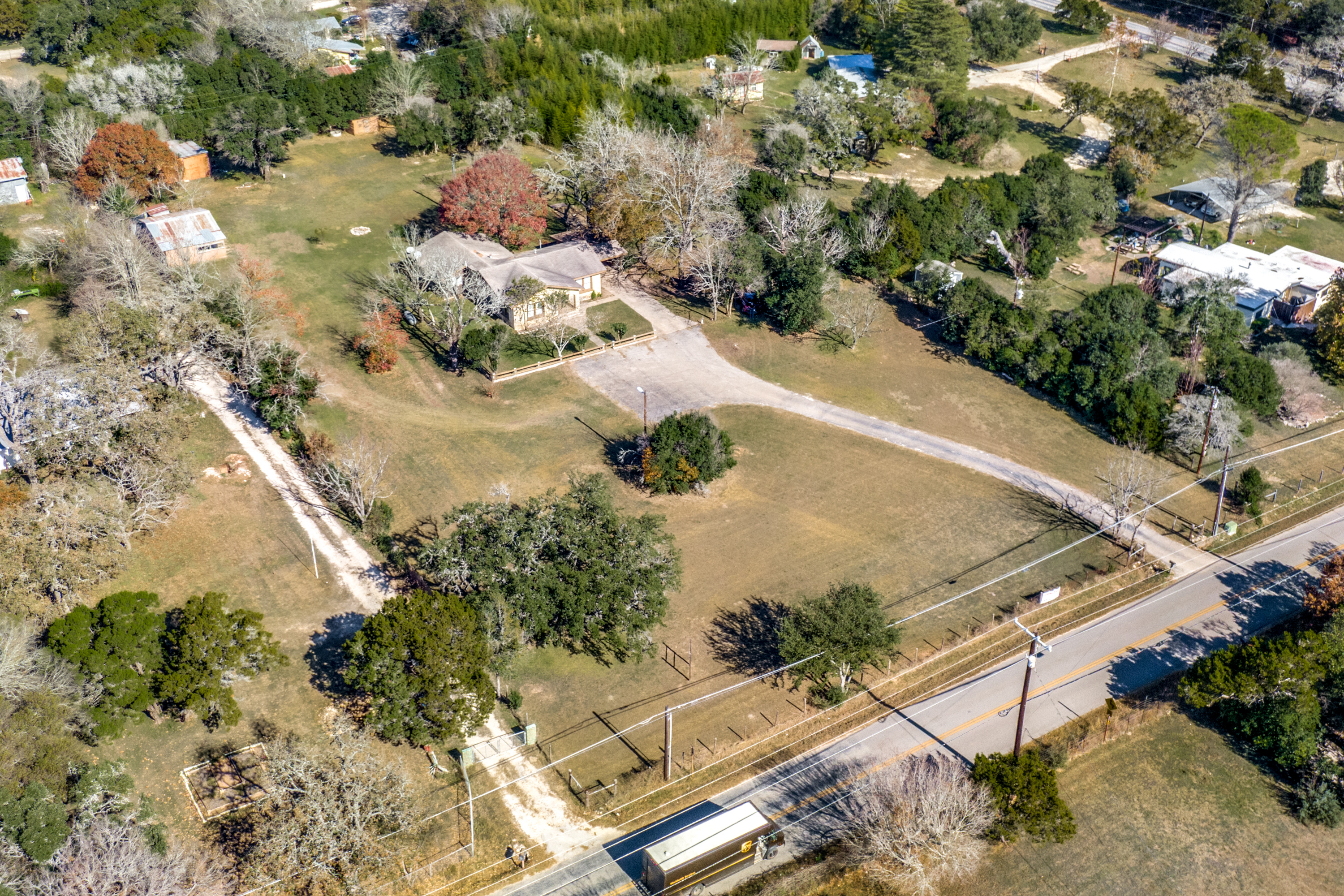 Rare Unrestricted nearly 2 Acre Property with easy IH-10 Access! Offering the perfect opportunity to run a business out of the existing home and outbuildings or LIVE and work at the same property. Nice mature trees-great potential for parking. Two big living areas, potential four bedrooms. Saltillo tile in the kitchen with granite counters, electric range, refrigerator, original hardwood floors through much of the home. One car carport.