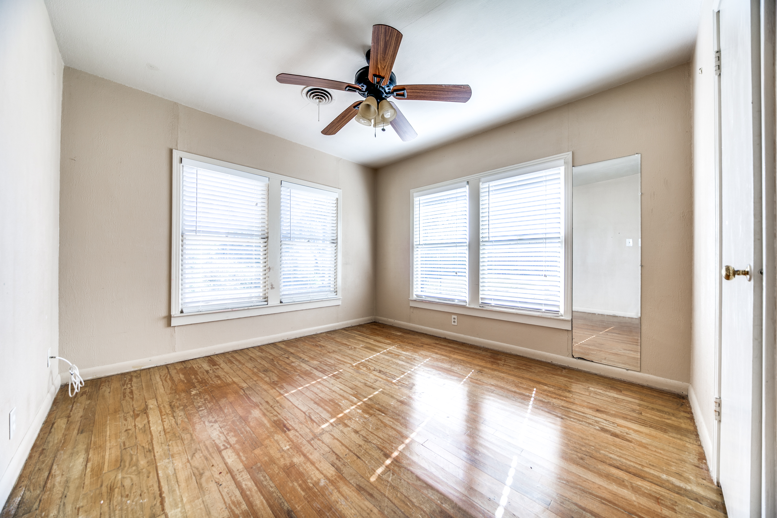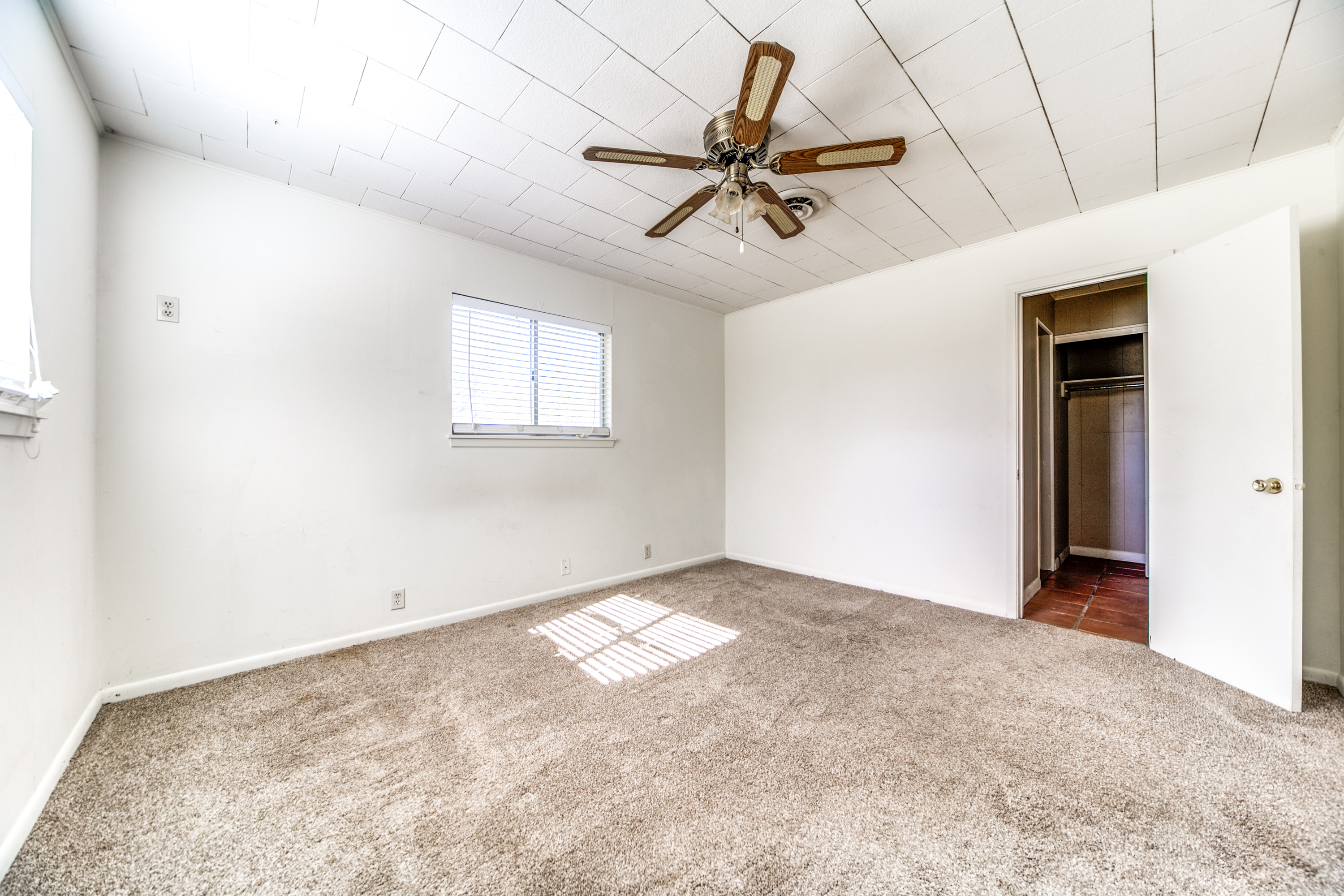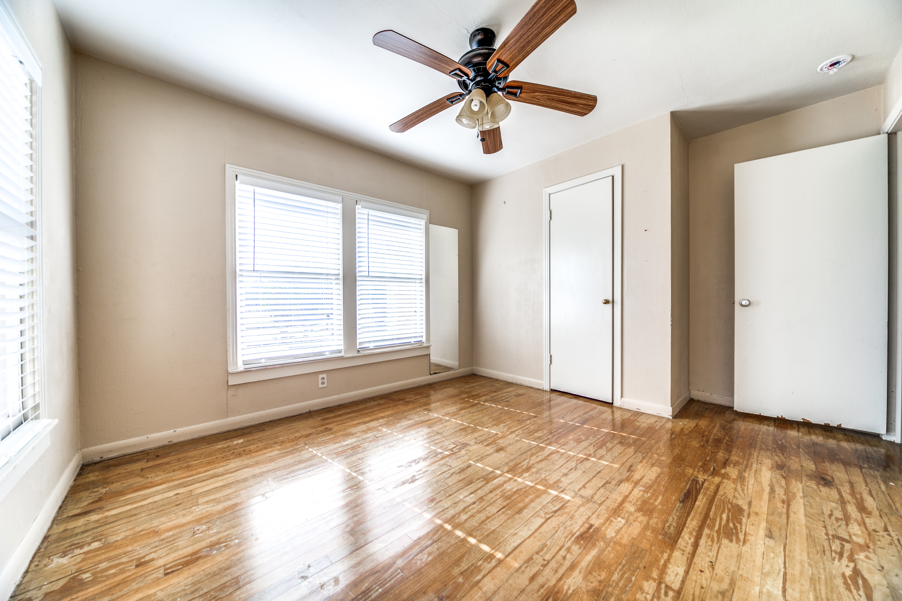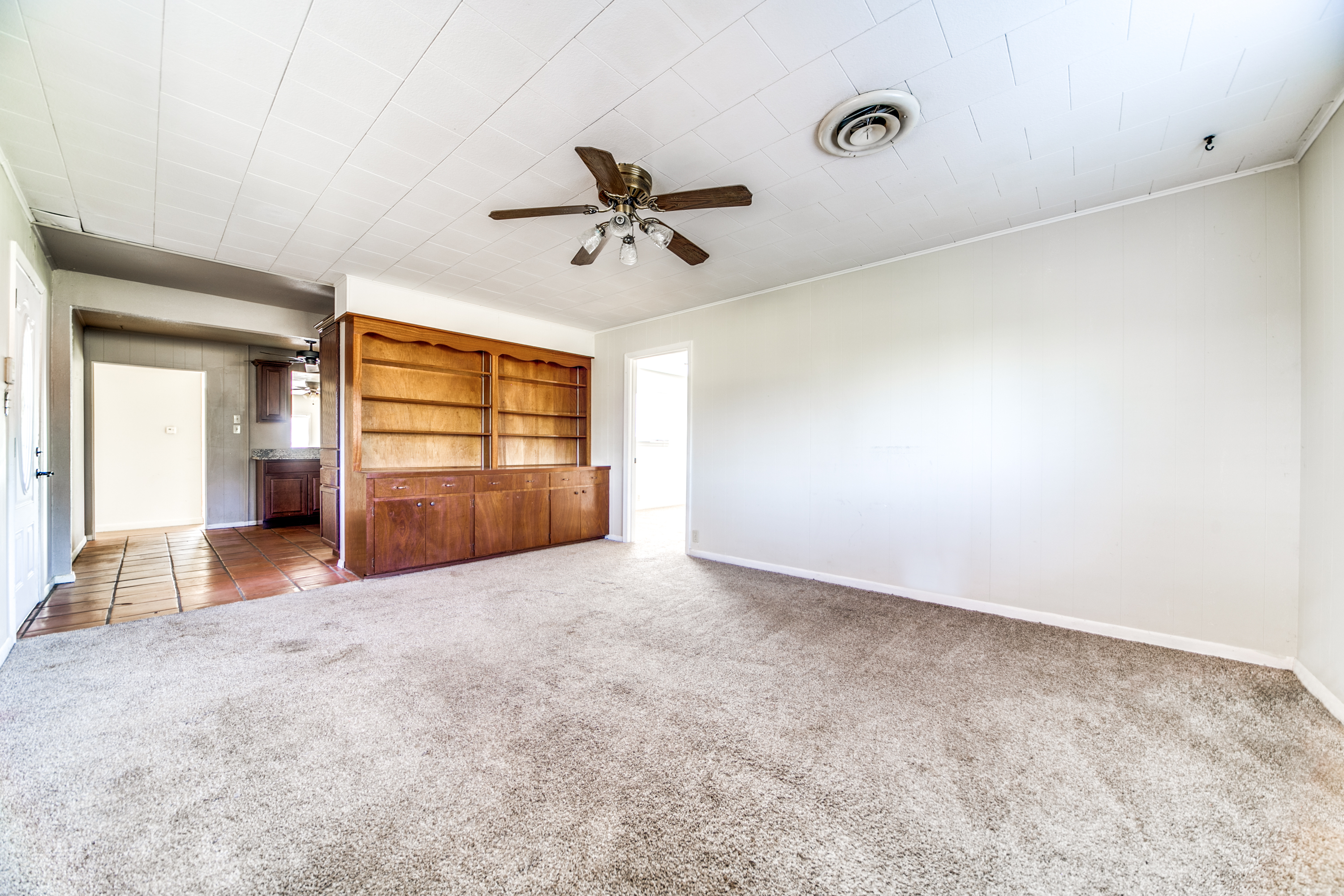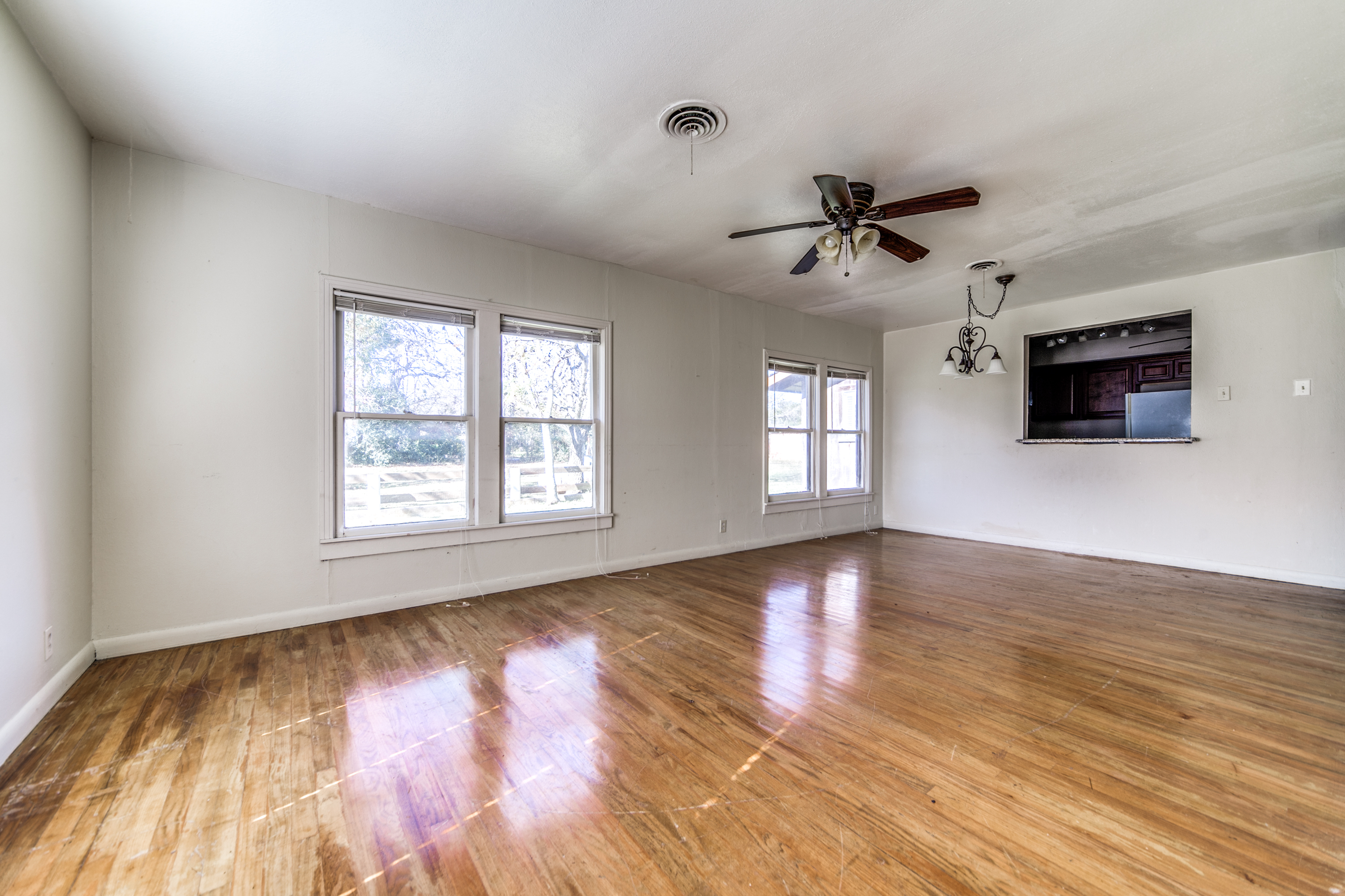 Rare Unrestricted nearly 2 Acre Property with easy IH-10 Access! Offering the perfect opportunity to run a business out of the existing home and outbuildings or LIVE and work at the same property. Nice mature trees-great potential for parking. Two big living areas, potential four bedrooms. Saltillo tile in the kitchen with granite counters, electric range, refrigerator, original hardwood floors through much of the home. One car carport.