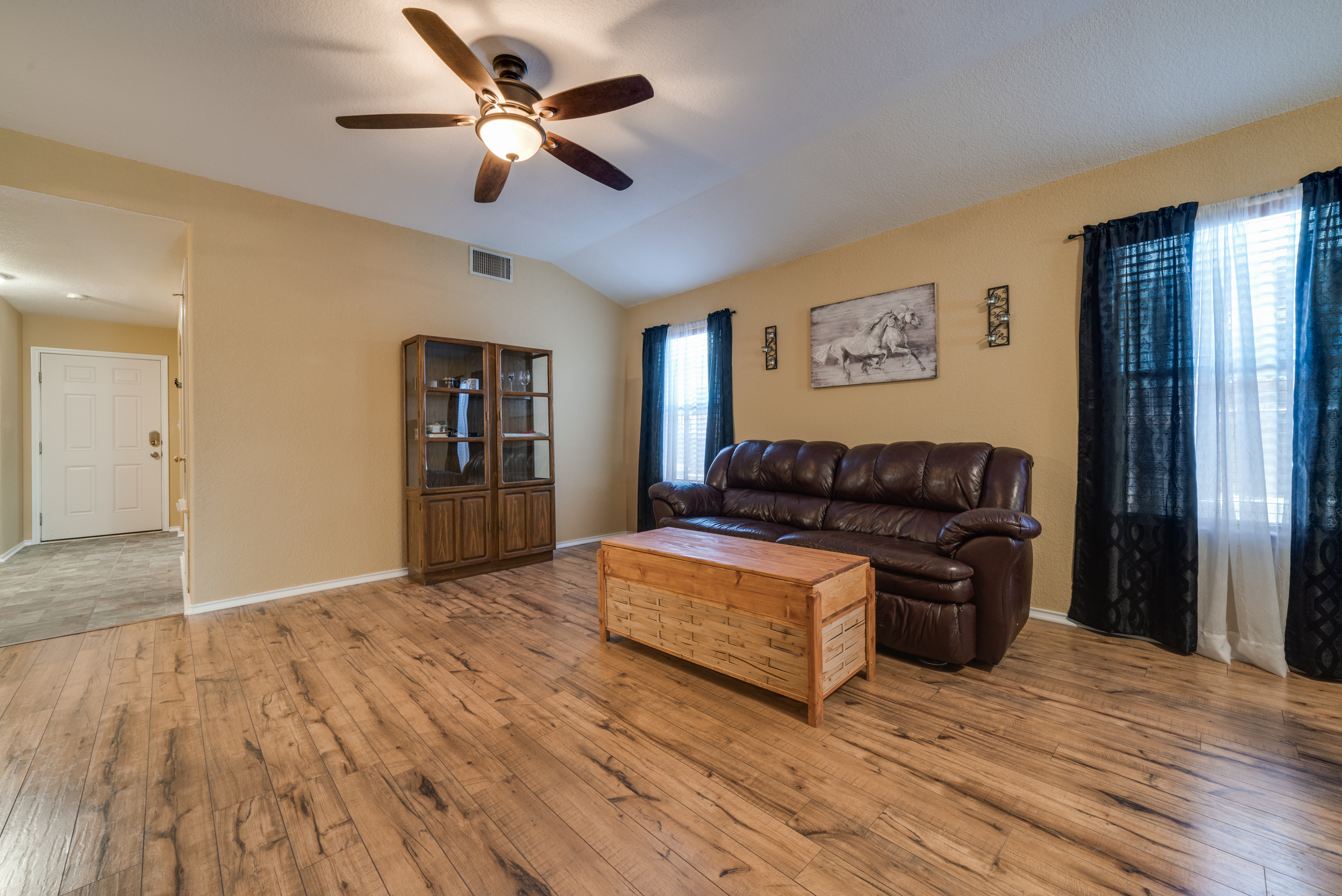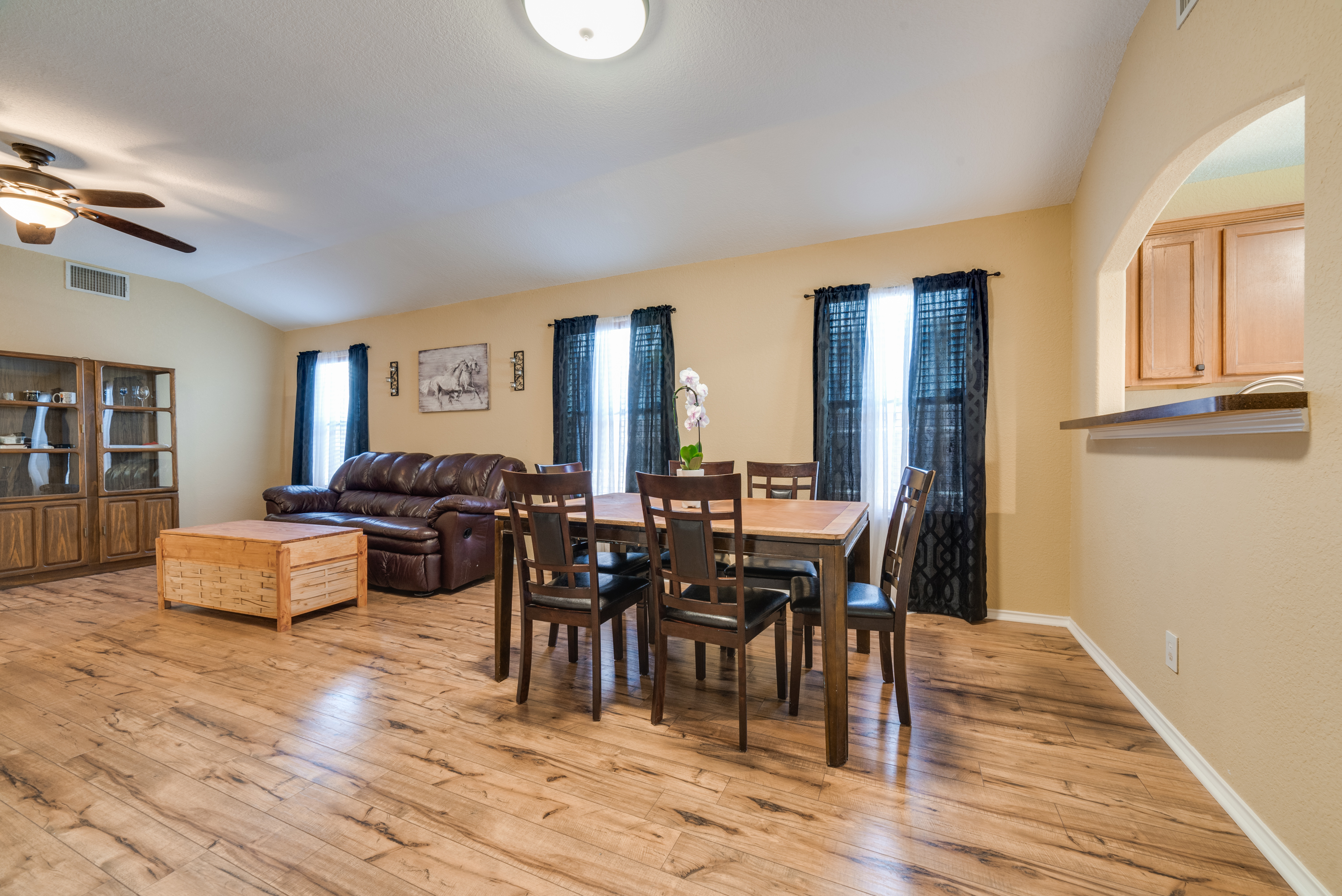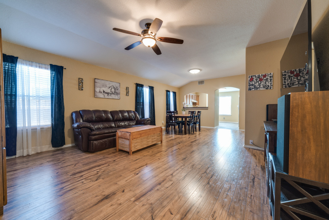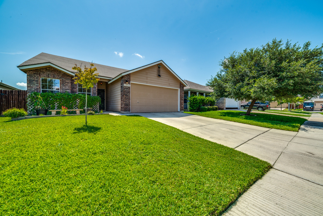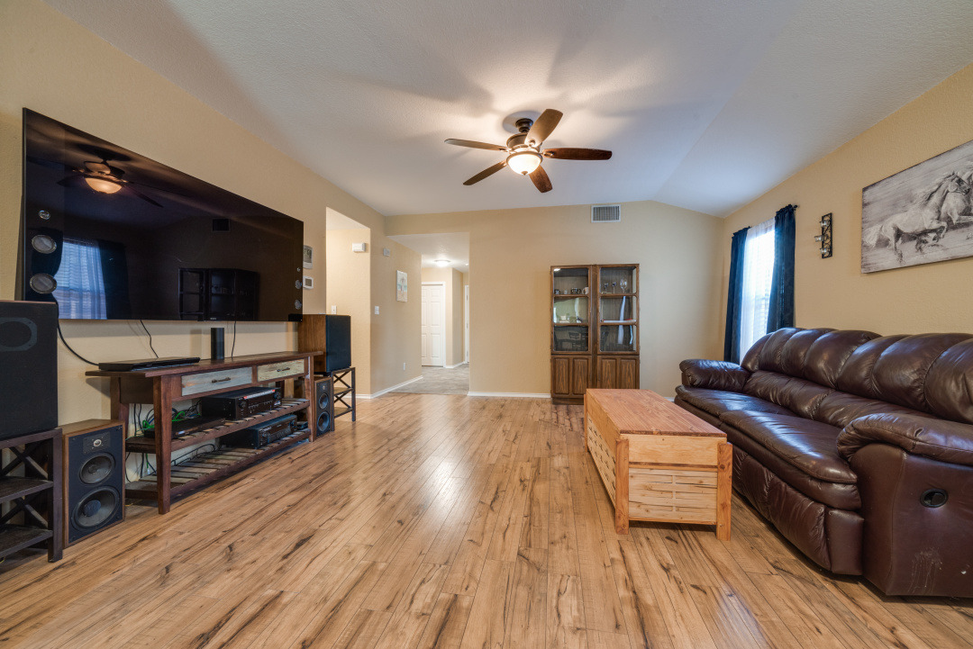 The beautiful manicured lawn is the envy of the neighborhood. As you enter the home there is a large flex room with a closet. This area is perfect for an office, game room or it can be closed in to make an additional bedroom. The oversized master bedroom is tucked away in the back of the home for privacy and has dual walk in closets. This home features an open floor plan perfect for entertaining with a spacious kitchen that opens up to the living and dining room. This home is conveniently located near Loop 410 and Hwy 151, Lackland AFB, Sea World, near shopping and restaurants.