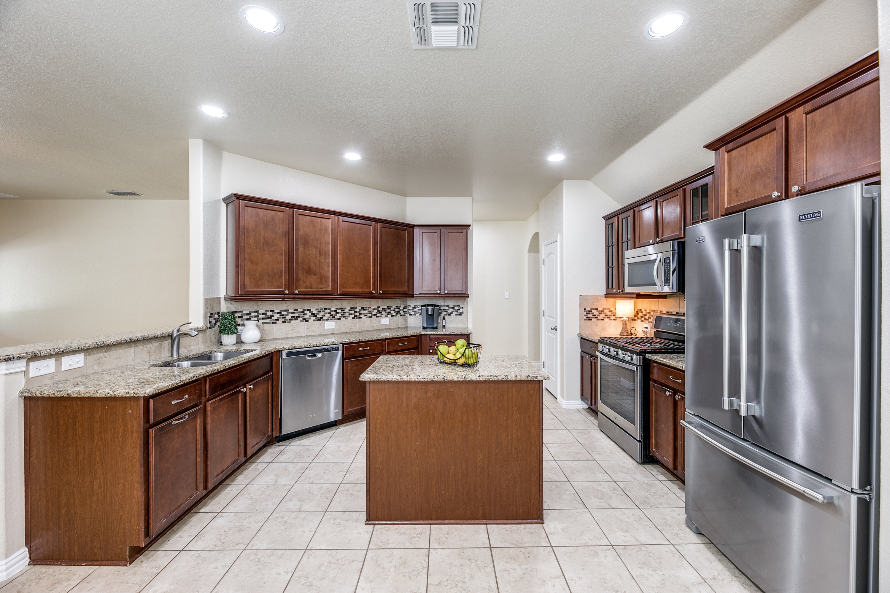 • You are going to fall in love with the floor plan, mother-in-law suite with private balcony, upgraded most of the kitchen, custom light fixtures, tile, carpet, extended back patio and so much more!!!