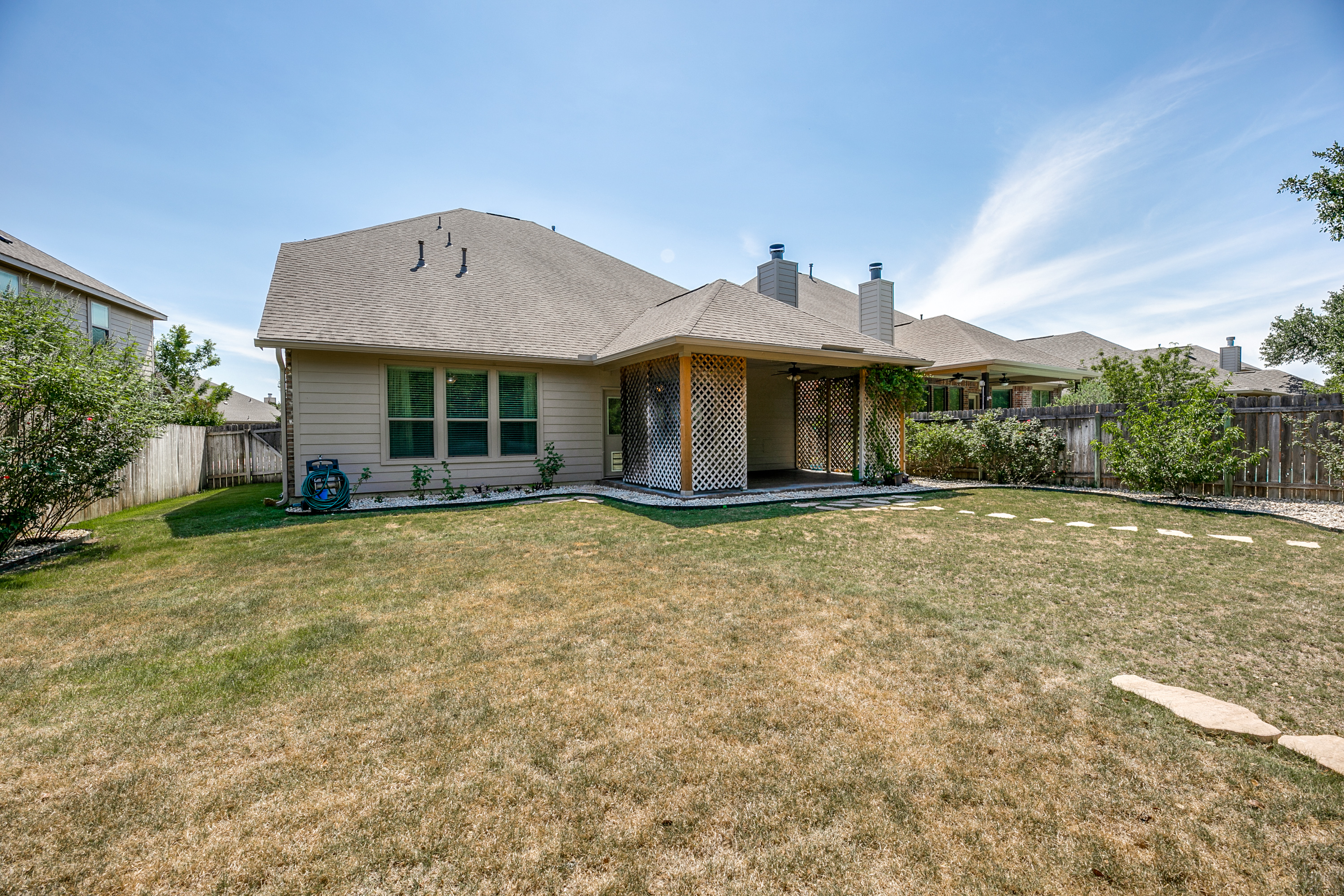 • The entire home boast attention to detail including beautiful open floor plan, transitional outdoor space with lush mature landscaping, fenced, sprinkler system, double pane windows, special yard lighting, and mature trees.