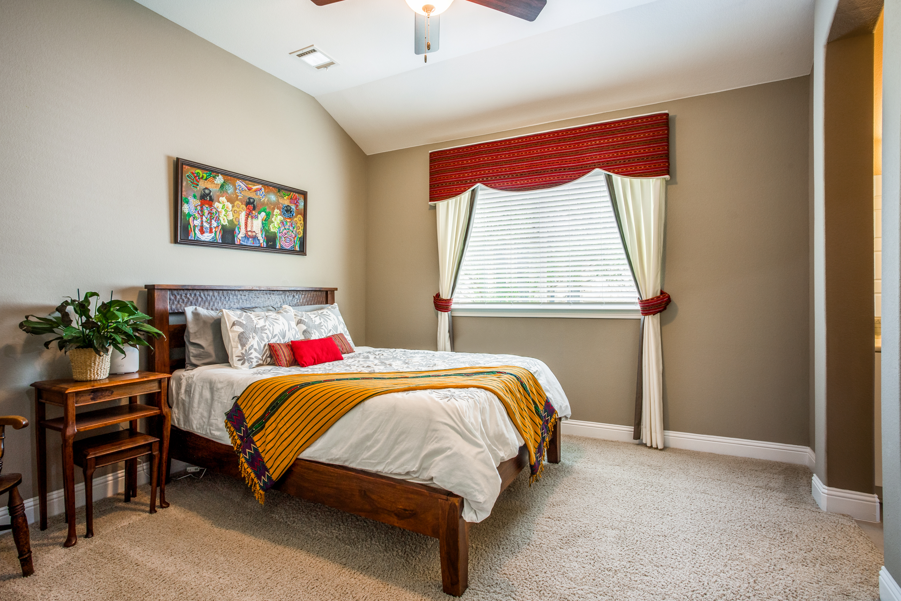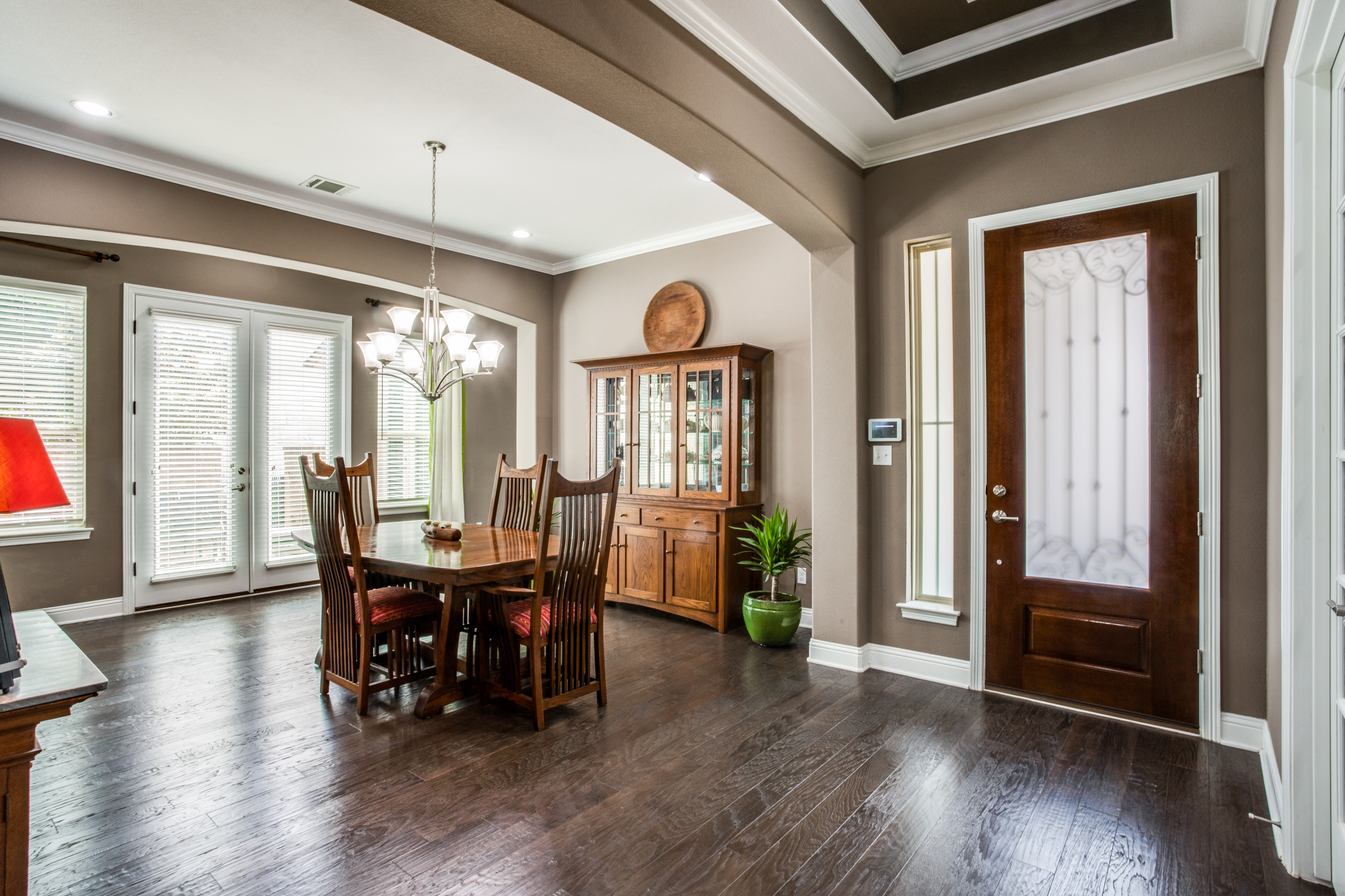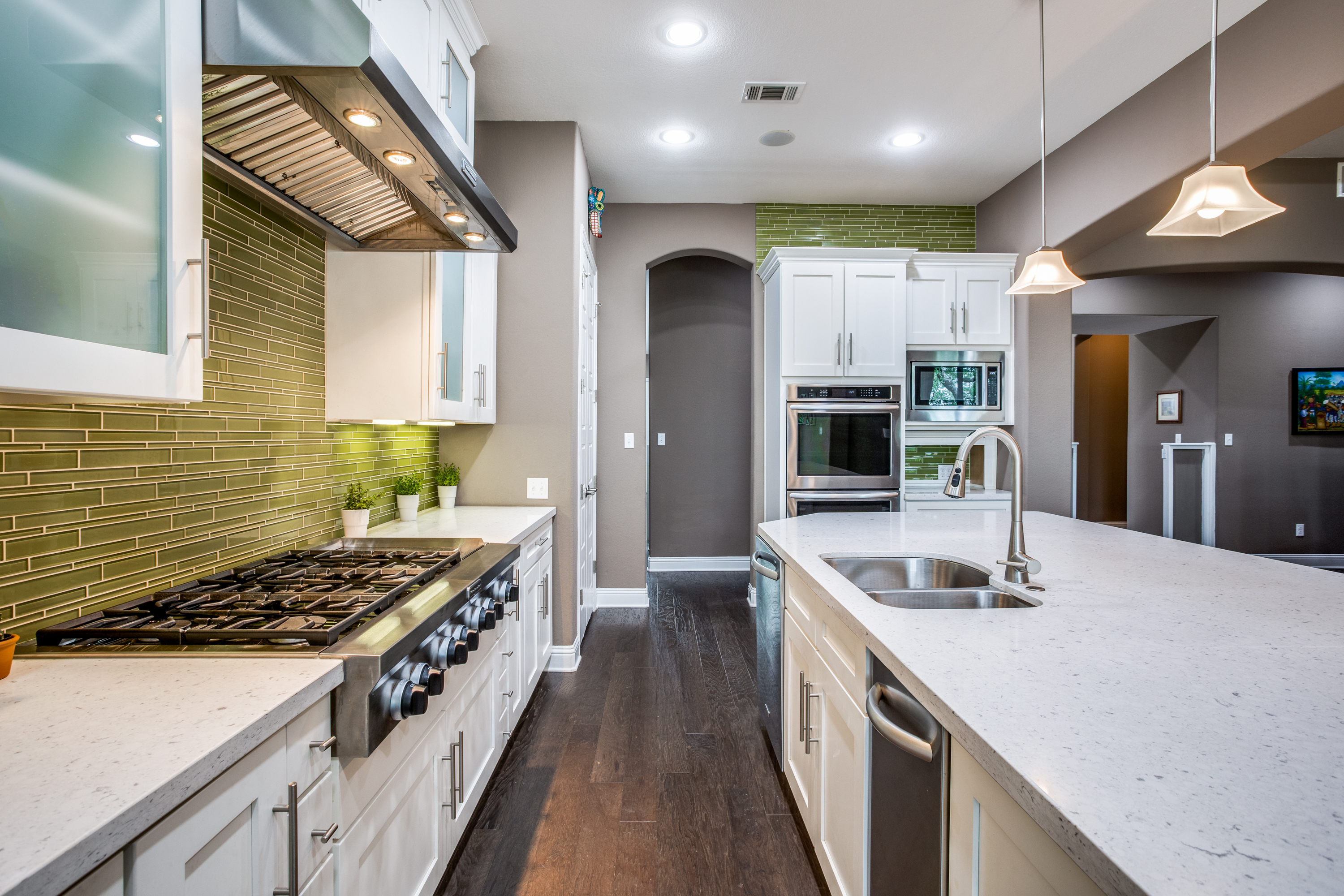 The four-sided stone and stucco exterior were recently painted, has solar boards in the attic and 2 tankless water heaters which help make a more energy-efficient home, 5 security cameras, and professional lighting on the front of the home, and professional landscaping for year-round low maintenance color.