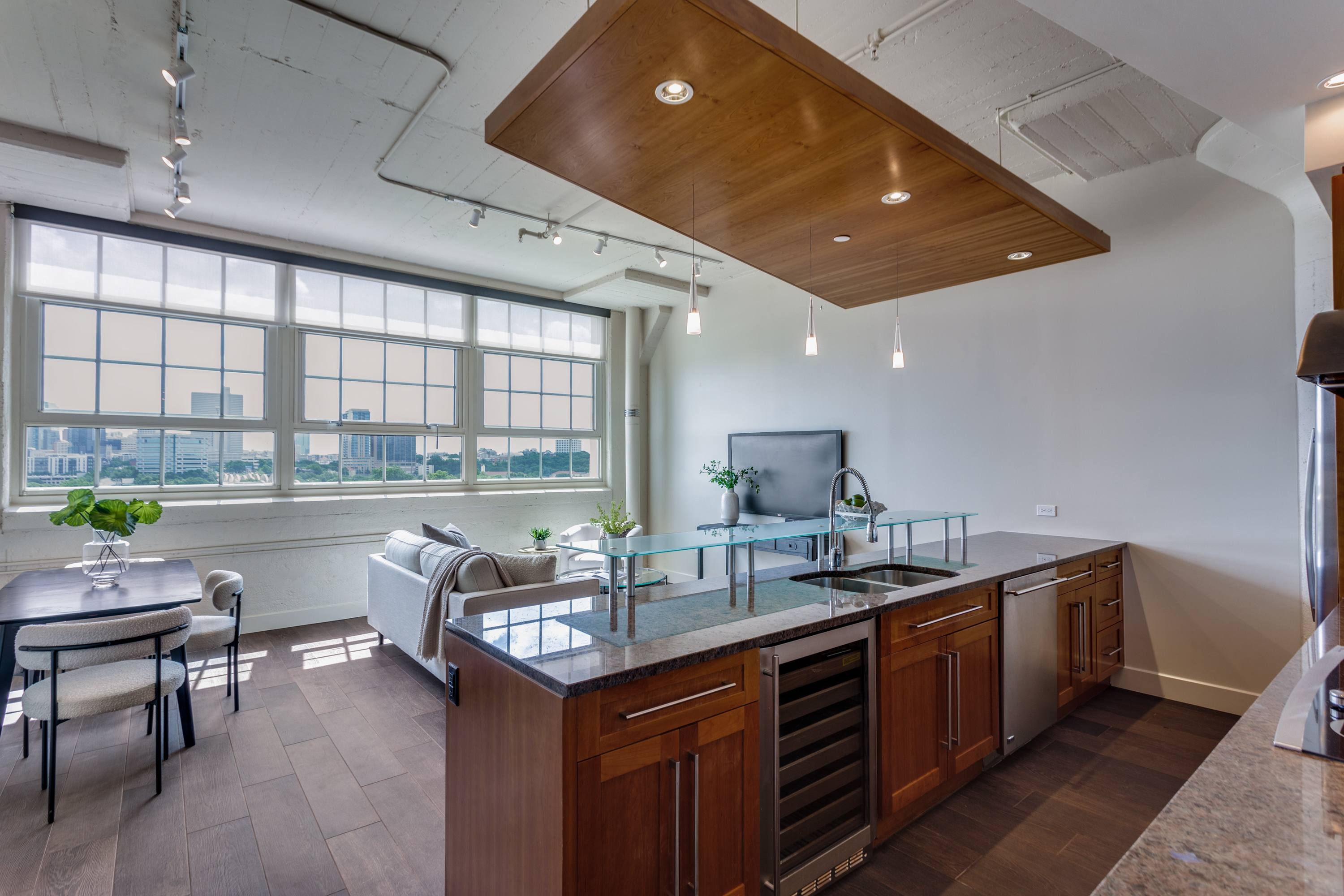 Nestled in Fort Worth’s vibrant West 7th Street Cultural District, this highly sought-after, walkable community puts premier dining, shopping, and entertainment just steps from your door. Enjoy the best of city living with a private dog park, and easy access to Trinity Park and the Trinity River trails—ideal for morning jogs, biking, or a scenic stroll. Perched on the desirable east side of the 6th floor, this exceptional two-bedroom, two-bath residence boasts breathtaking downtown views. The open-concept layout is designed for both style and functionality, featuring: A chef-inspired kitchen with upgraded finishes, granite countertops, and stainless-steel appliances, elegant custom woodwork and built-in cabinetry for extra storage, new tile and plush carpet flooring throughout, A spacious primary suite with an upgraded ensuite bath and a custom walk-in closet. This unit includes two deeded parking spaces (3091 & 3092) in the East Tower Garage. Montgomery Plaza offers resort-style amenities, including: Luxury rooftop pool with cabanas and a spa, Outdoor living & grilling areas, Putting green, Indoor lounge, media room, and fitness center, 24-hour concierge & secured access, Gated dog run area, daily public transit connecting Montgomery Plaza to downtown’s Cultural and Entertainment Districts, plus easy access to I-30, I-35, and 121, commuting is effortless. Discover the unparalleled lifestyle Montgomery Plaza has to offer—schedule your private tour today! Fridge, Washer, Dryer conveys.