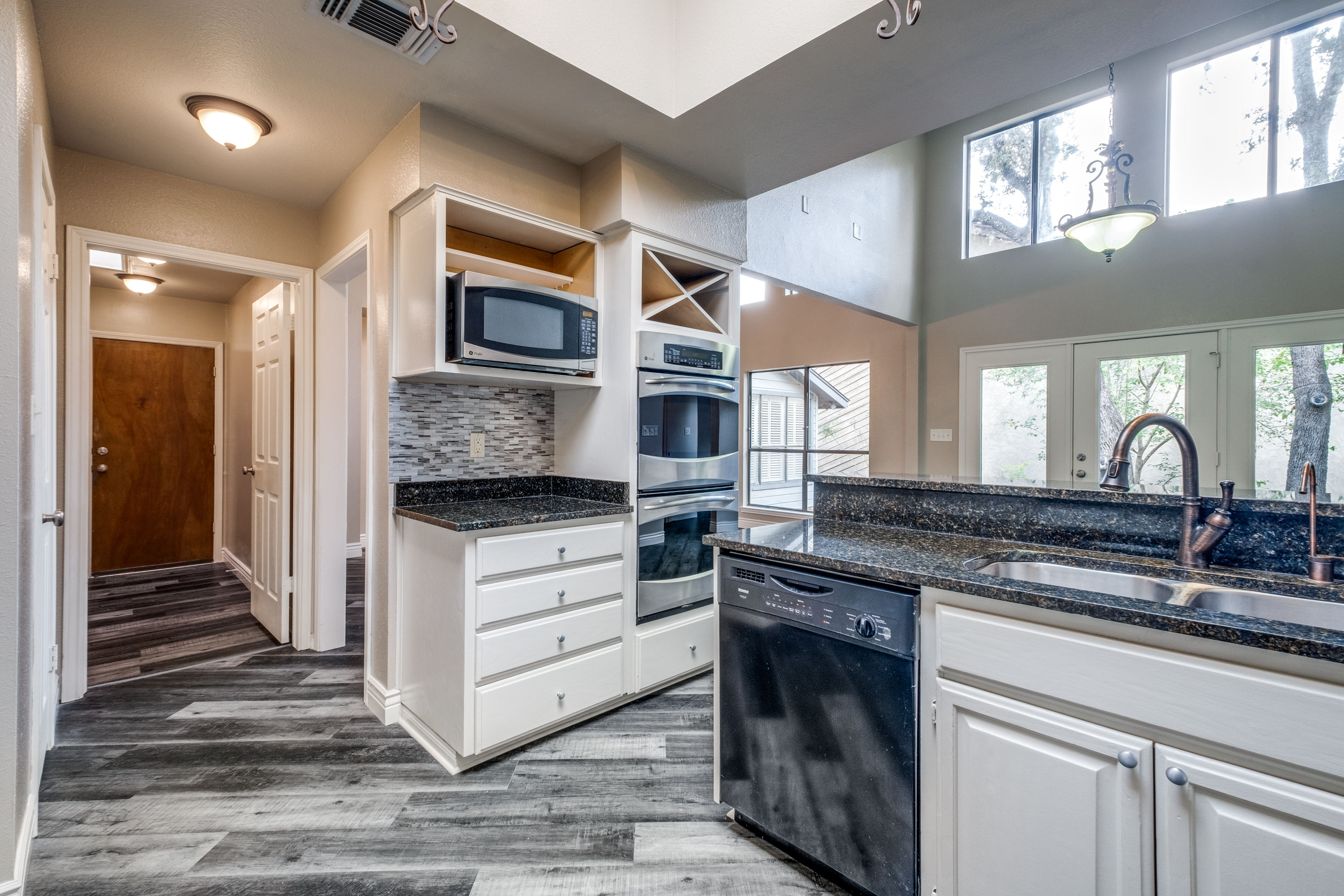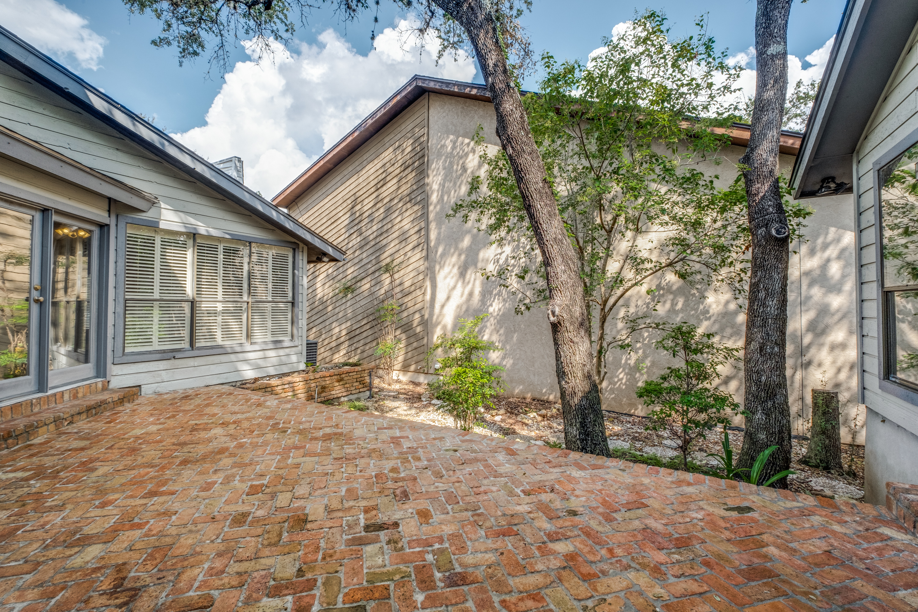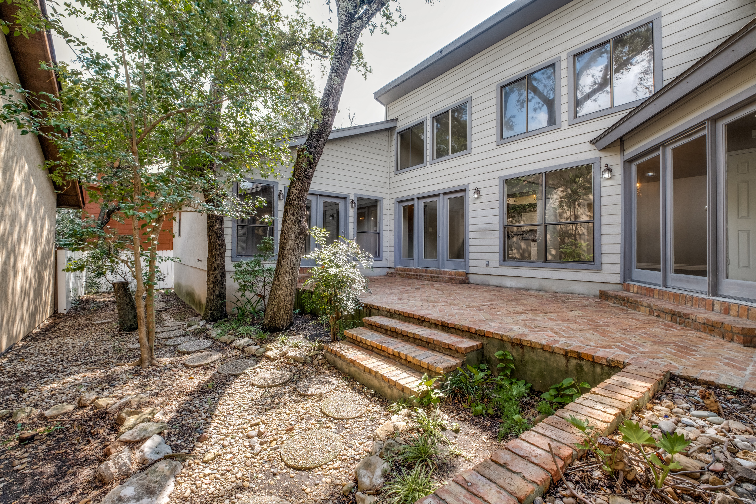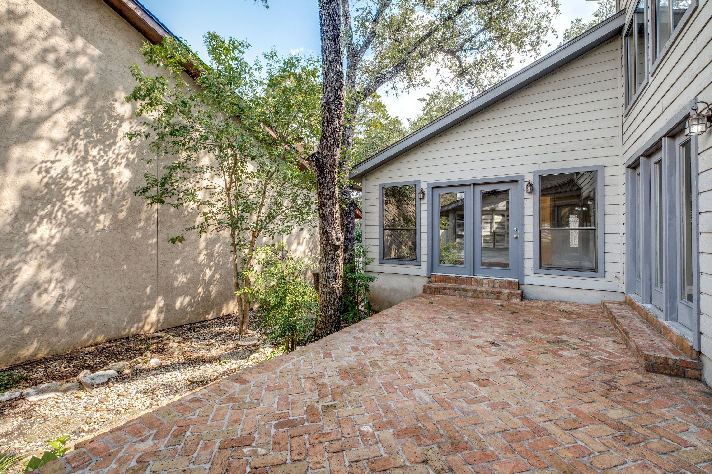 Gorgeous, natural light-filled, updated Garden home in River Oaks. This 3-bedroom, two-bath 2,066 sq. ft. house is low-maintenance and has abundant storage. There is natural light throughout from oversized windows and vaulted ceilings, with French Doors opening onto a raised herringbone brick courtyard and grass-free private yard, with two mature oak trees. There is tons of storage space - walk-in closets in all three bedrooms (2 in master bedroom) and a walk-in pantry, four half-closets in the hall, a coat closet in the entryway, and even a closet in the laundry room! The kitchen has granite countertops and all white cabinetry with a newer stainless steel built-in double oven with a matching microwave, and a stainless steel vent hood over a glass cook top, and a gorgeous backsplash. There is no carpet in this home - there are new stone core luxury floors in the kitchen, breakfast area, dining room, laundry room, and master and second bedrooms (2021). Engineered hardwood flooring in the living room and third bedroom and gorgeous Travertine tile in the entryway. Freshly painted kitchen, breakfast area, dining room, living room, and laundry room, which has been recently renovated (2021) with all-wood cabinetry and soft close doors and drawers. The master bathroom boasts a double vanity and marble tile shower with a garden tub and two large walk-in closets. Built-in bookshelves in the third bedroom with stylish widow seat nook under the bay window with custom window treatments. The elegant, upgraded lighting includes stunning chandeliers, striking sconces, and a beautiful vanity light in the master bathroom. There is also a new 50-gallon water heater (2021), whole house water softening system, a triple osmosis filtering system at the kitchen sink which extends to refrigerator, and an automatic sprinkling system. Gorgeous new front door with Schlage Sense Smart Lock (you can unlock and lock, and check the history of the codes from your phone). and an electronic thermostat with voice and app control, ceiling fans with lights in the living room, and second and third bedrooms, and a gas fireplace in the living room. Wonderful neighborhood and a fantastic place to call home.