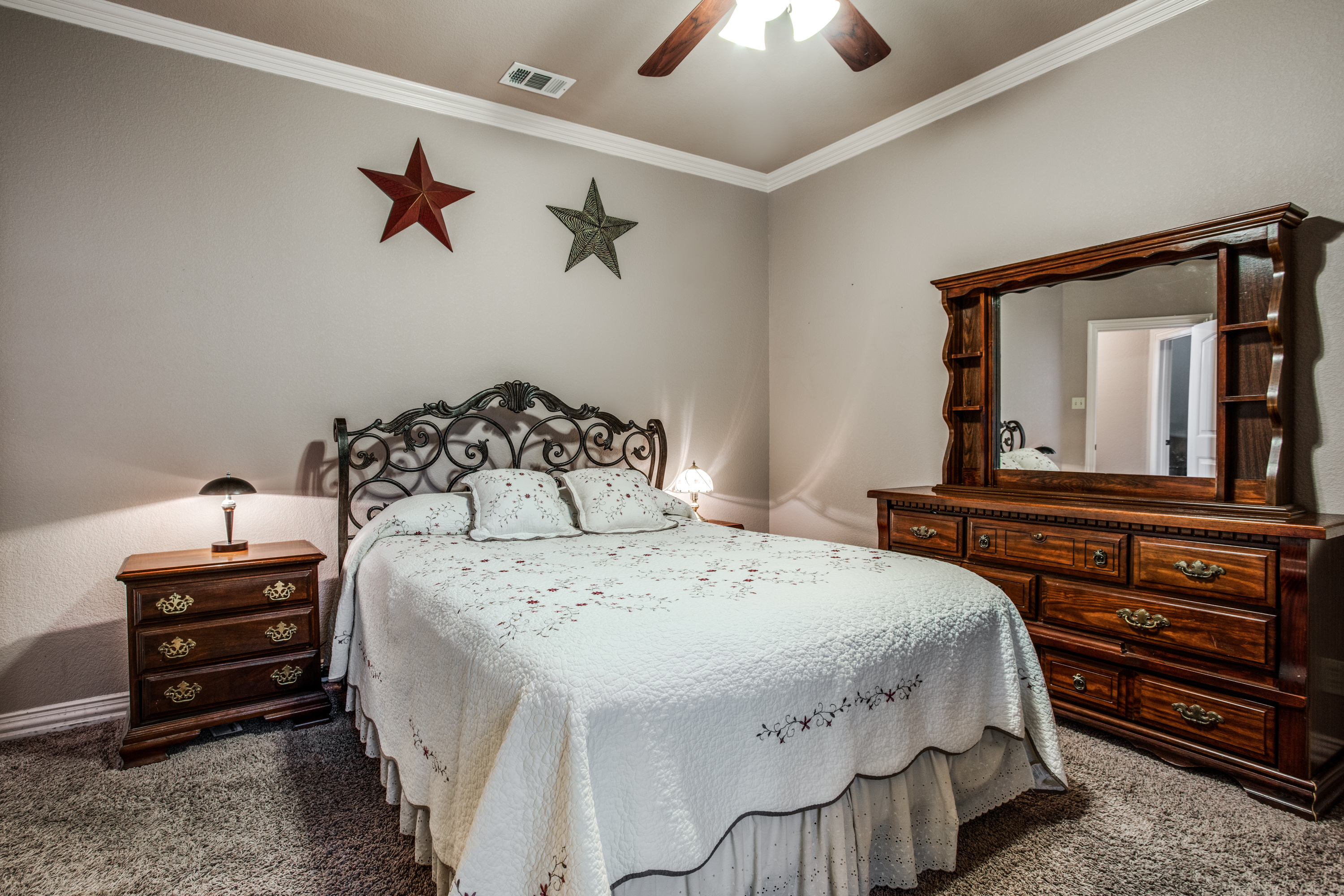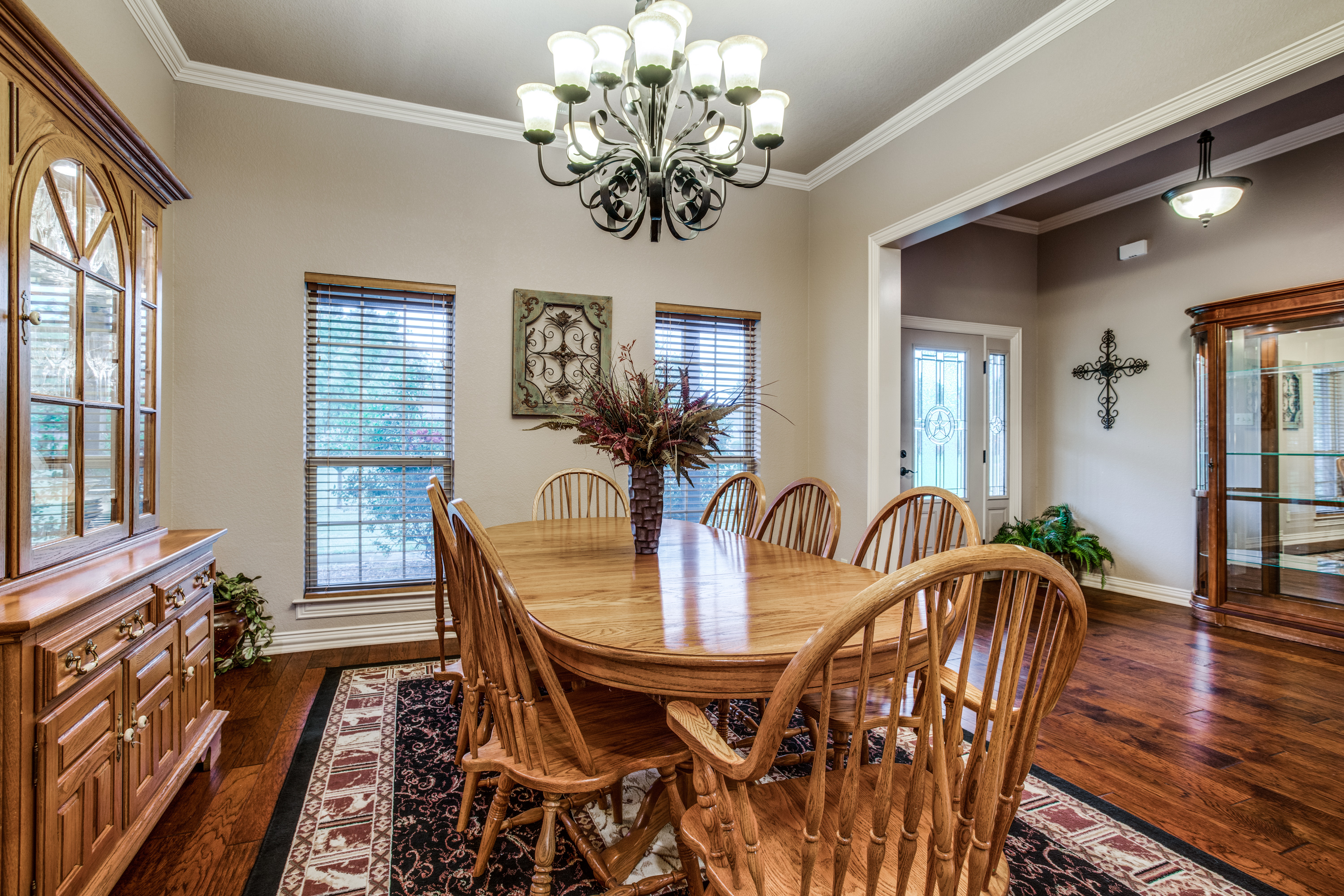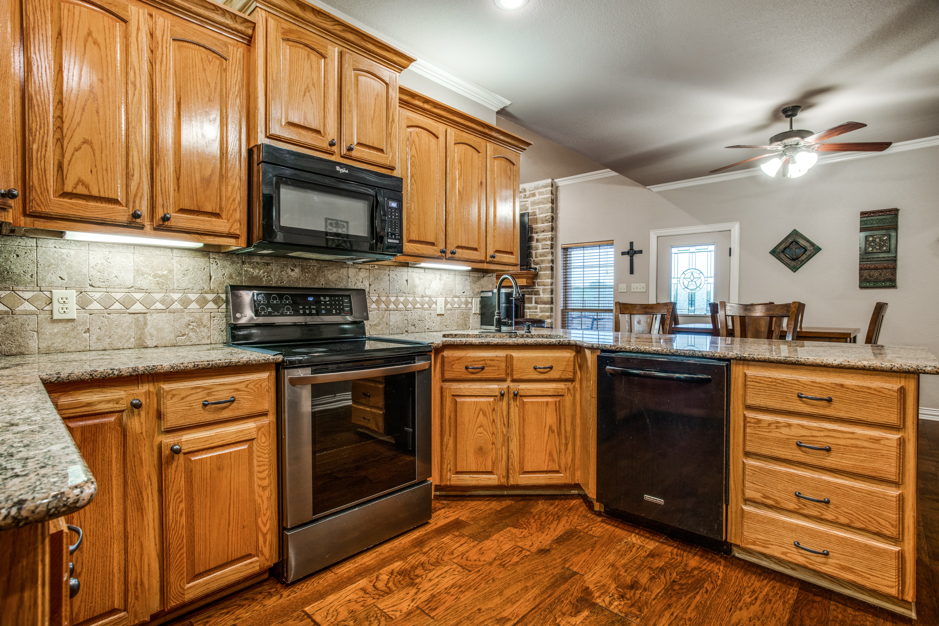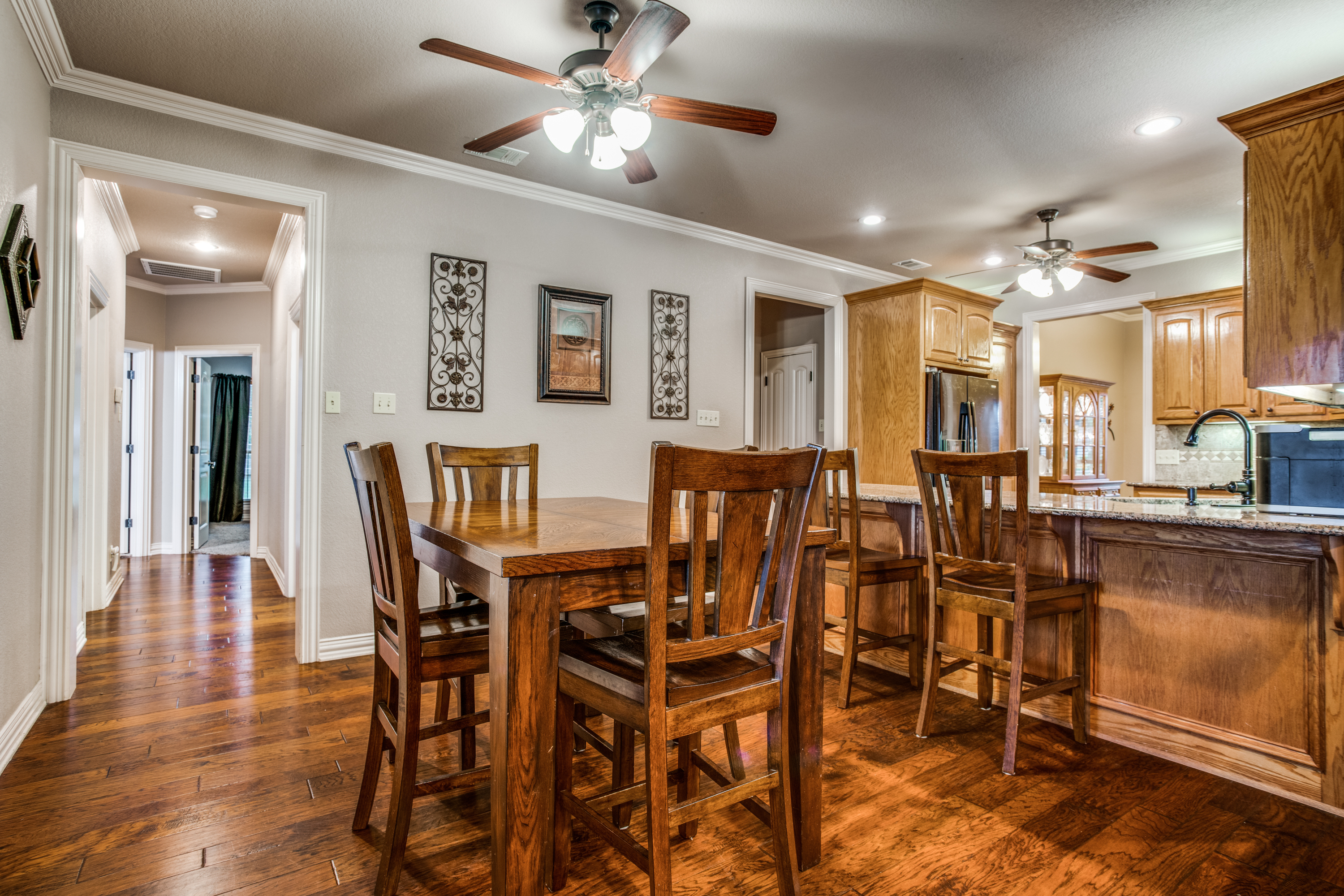 Stunning estate nestled in serene country setting. Separate 30x40 shop with electricity and water, includes 20x40 carport and 16x50 RV and boat parking. Don't miss this sprawling ranch style home with stunning hardwood floors and vaulted ceilings. Could easily be a 5 bedroom home with an armoire addition. Eat-in kitchen has breakfast bar, ample cabinets, separate pantry, and abundant granite counter space. Private master has walk-in shower, soaking tub, separate vanities, and spacious closet. Living room has Quadra-Fire Pellet Stove with separate thermostat. Generous property set-back provides space and privacy. Built in pool for hot Texas summers! Property line is not fence line, it is represented in drone photos.