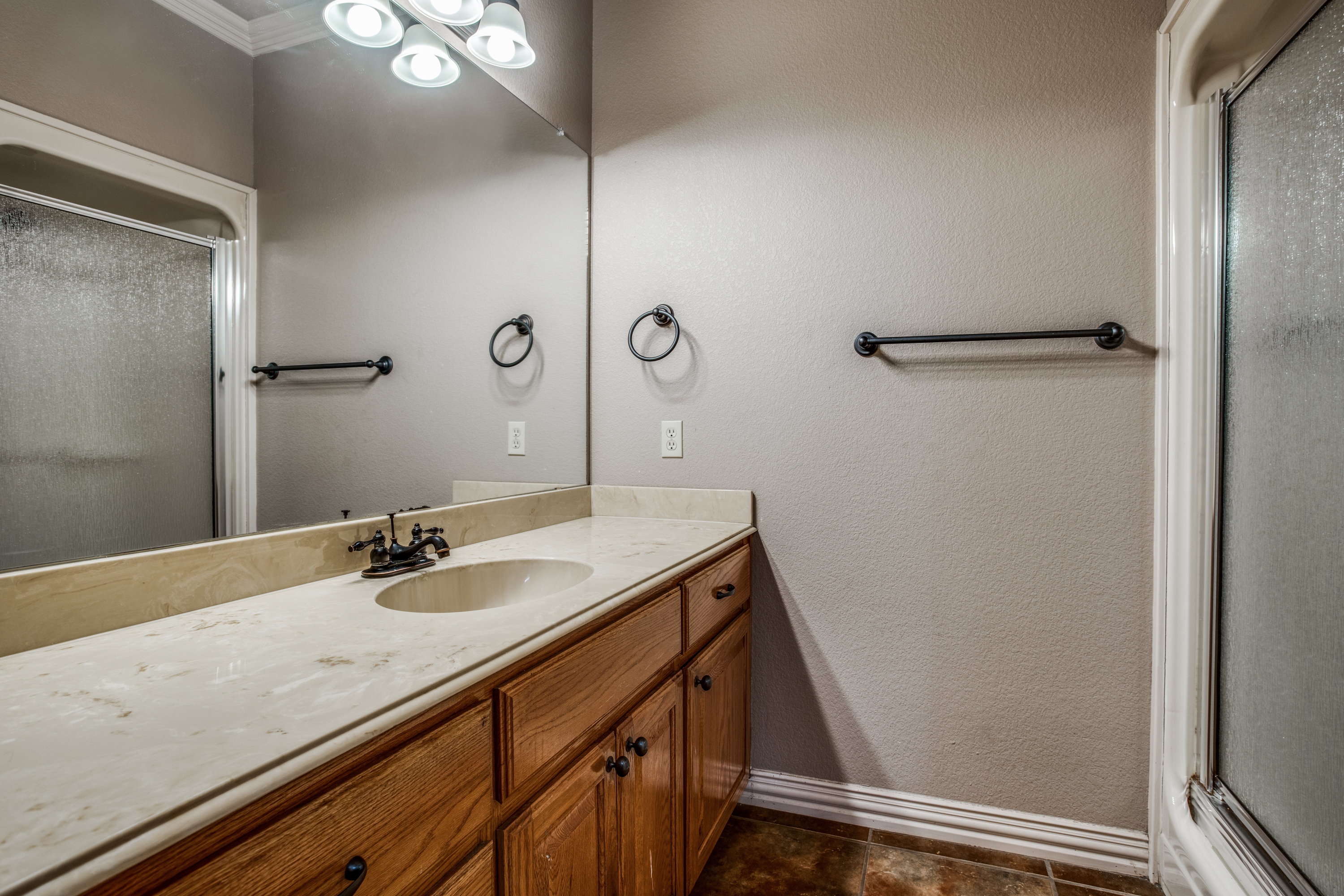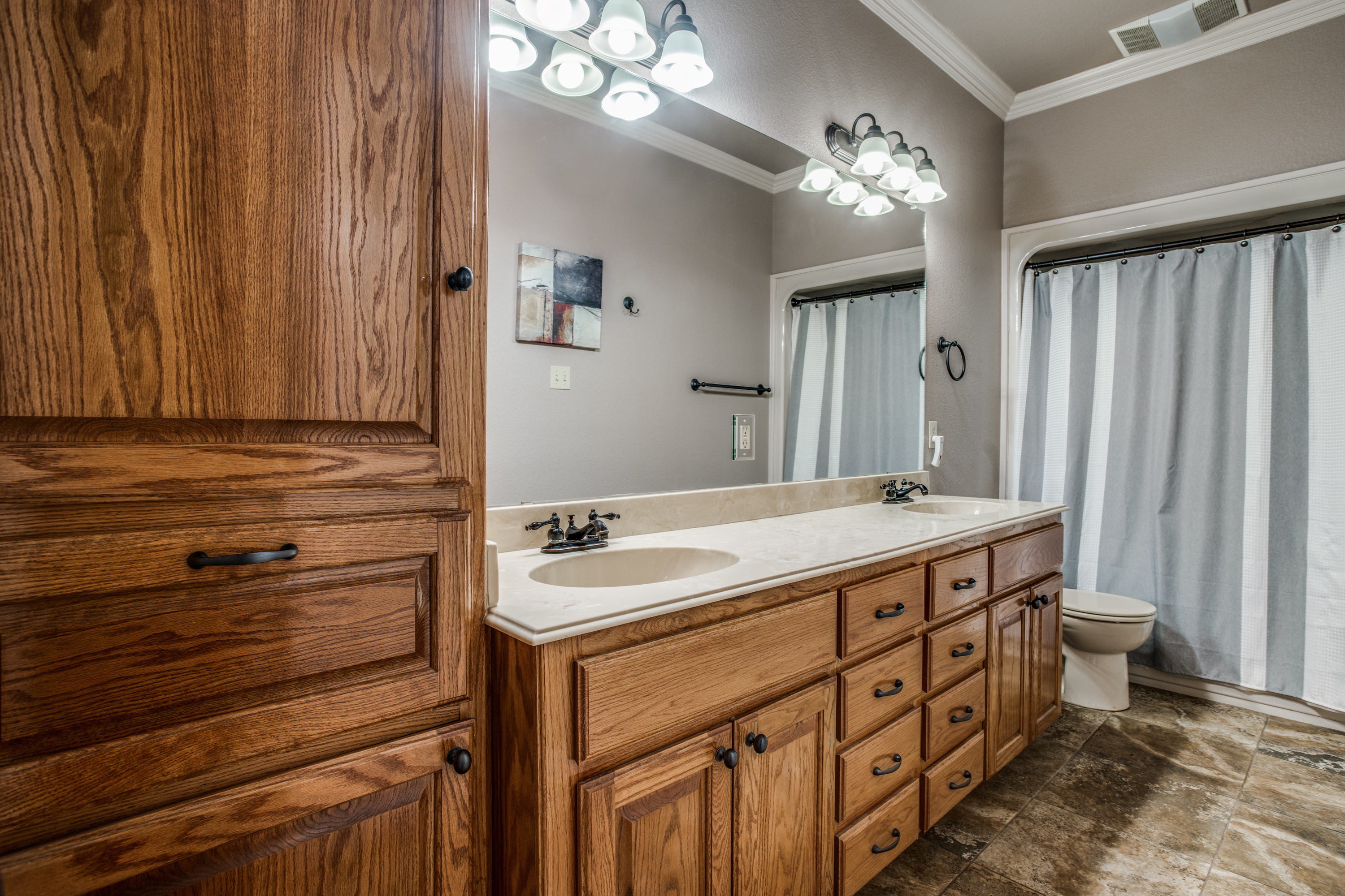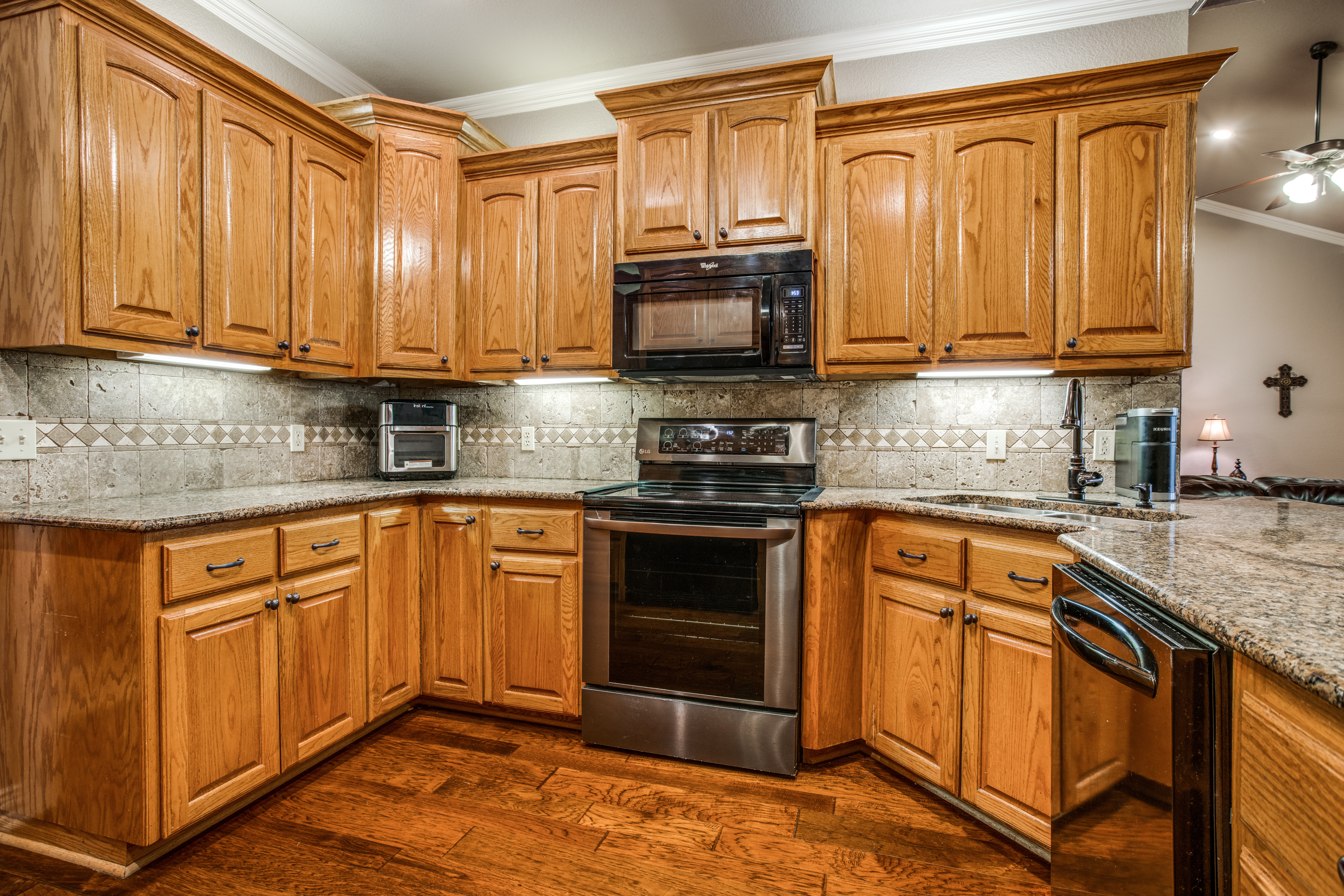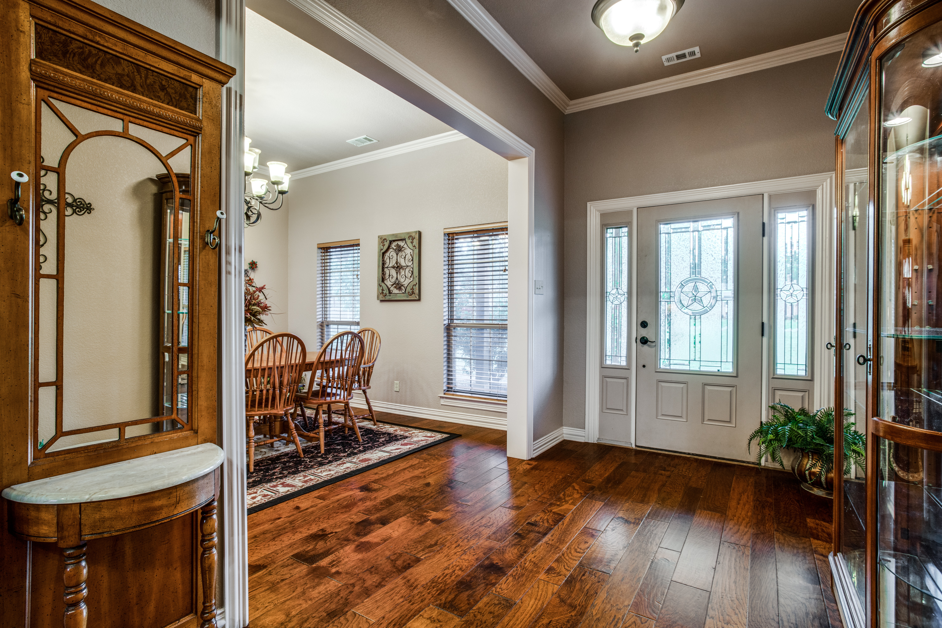 Stunning estate nestled in serene country setting. Separate 30x40 shop with electricity and water, includes 20x40 carport and 16x50 RV and boat parking. Don't miss this sprawling ranch style home with stunning hardwood floors and vaulted ceilings. Could easily be a 5 bedroom home with an armoire addition. Eat-in kitchen has breakfast bar, ample cabinets, separate pantry, and abundant granite counter space. Private master has walk-in shower, soaking tub, separate vanities, and spacious closet. Living room has Quadra-Fire Pellet Stove with separate thermostat. Generous property set-back provides space and privacy. Built in pool for hot Texas summers! Property line is not fence line, it is represented in drone photos.