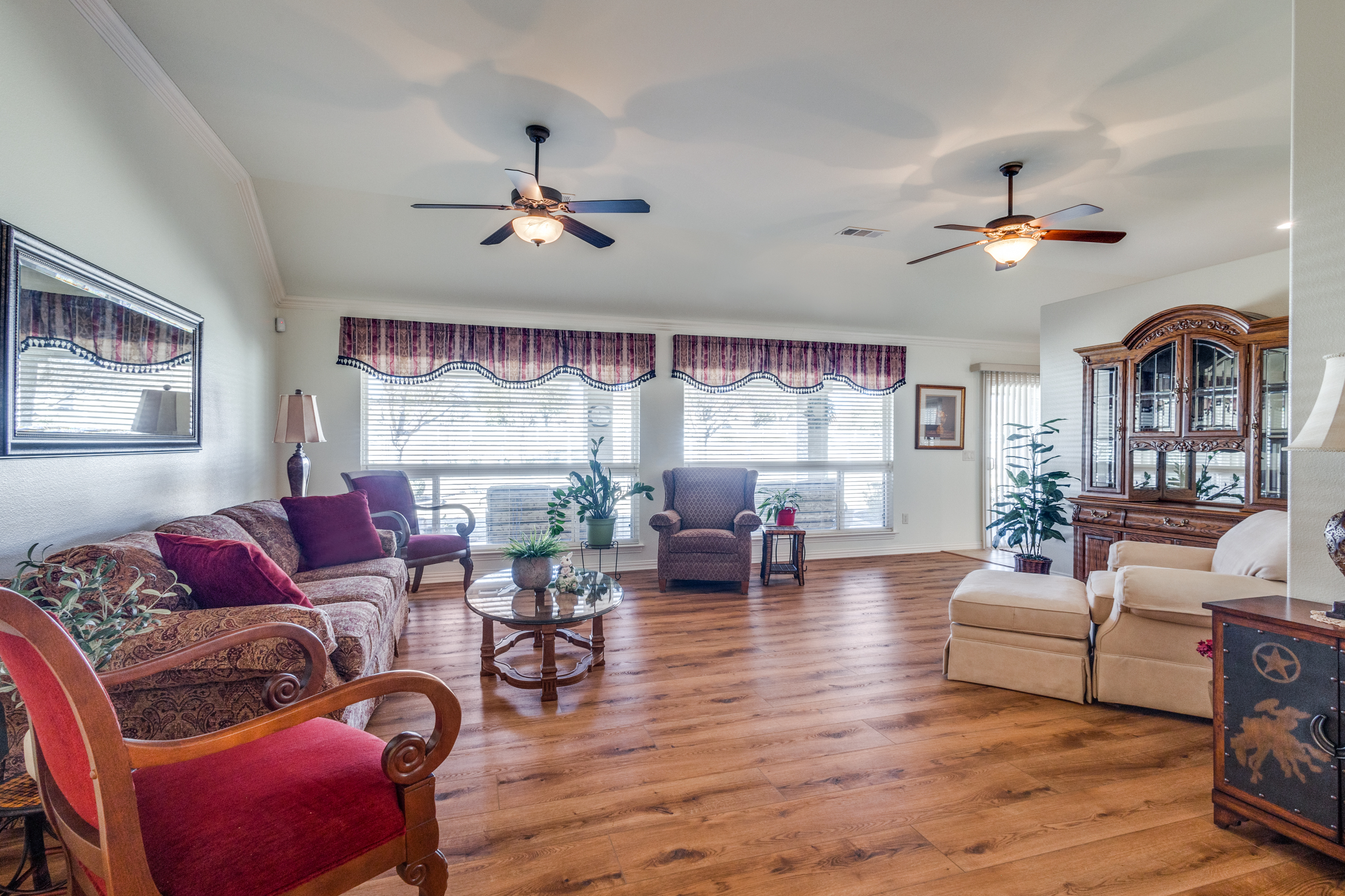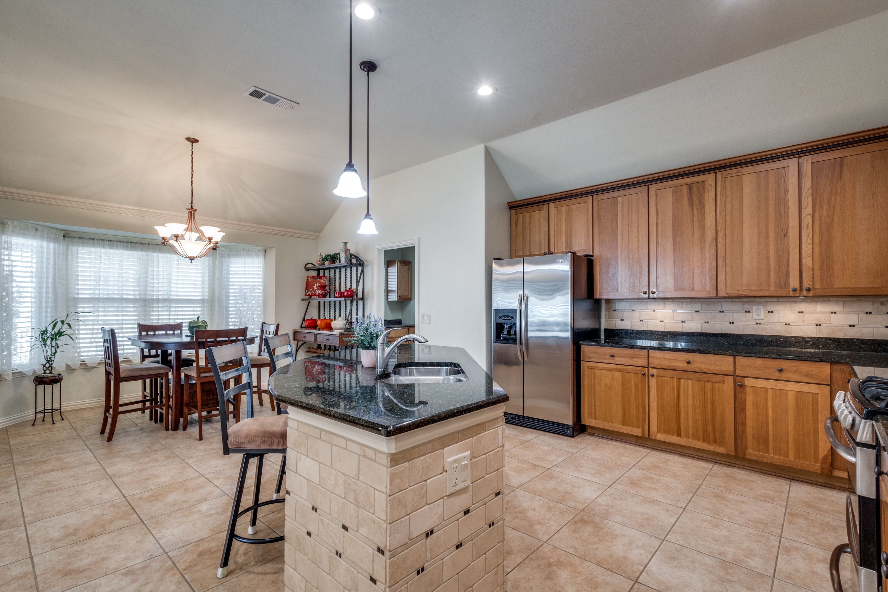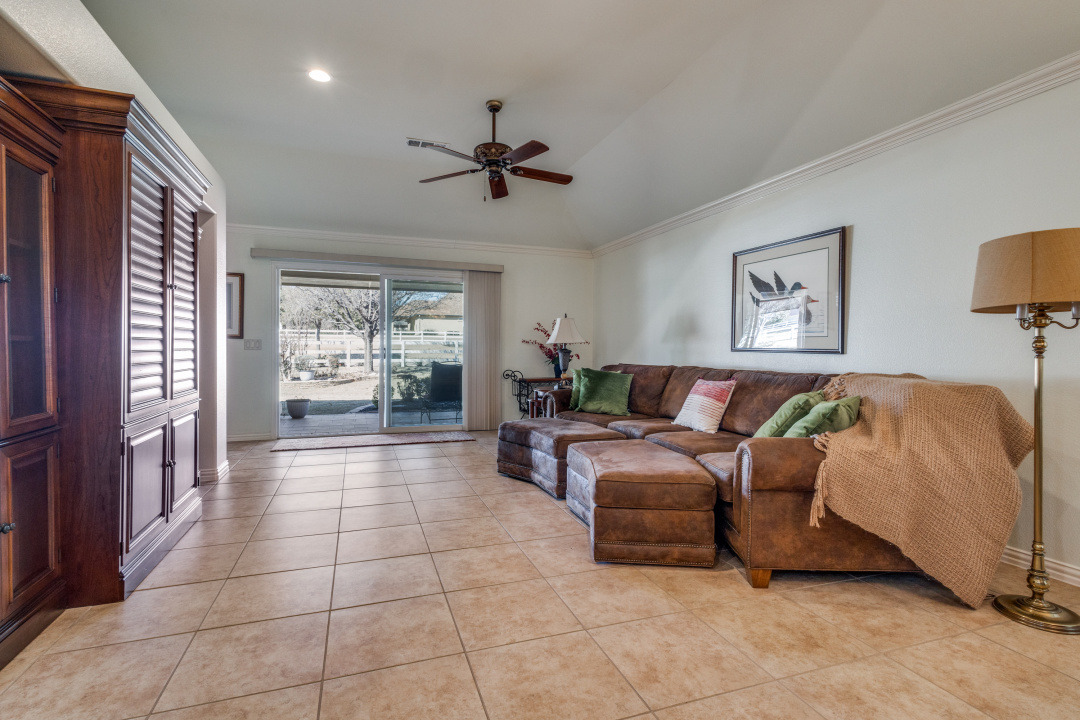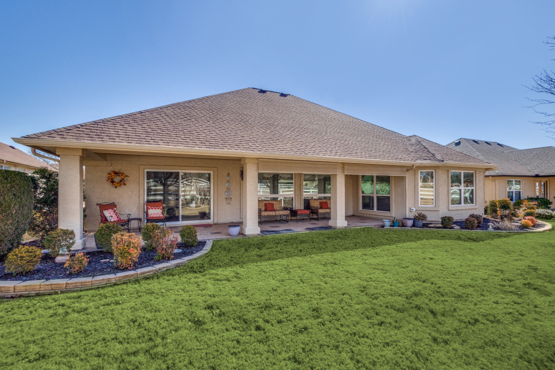 Welcome to 9704 Freeport Drive, a beautifully maintained single-story home in the desirable 55+ community of Robson Ranch in Denton, Texas. This 3-bedroom, 2-bathroom gem offers a bright, open floor plan designed for easy living. The spacious living and dining areas flow effortlessly, while an additional flexible space can serve as a home office or formal dining room—catering to your unique needs. The inviting family room opens to the kitchen, creating a warm, open atmosphere, with sliding doors that lead to the peaceful backyard.