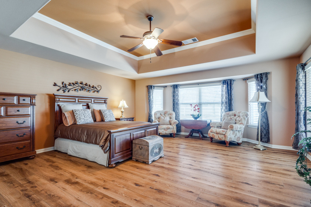The oversized primary bedroom is a serene retreat, complete with a cozy sitting area. Just outside the suite, you'll find a convenient coffee bar or storage nook for added functionality. The oversized 2-car garage provides plenty of extra storage space for all your needs.